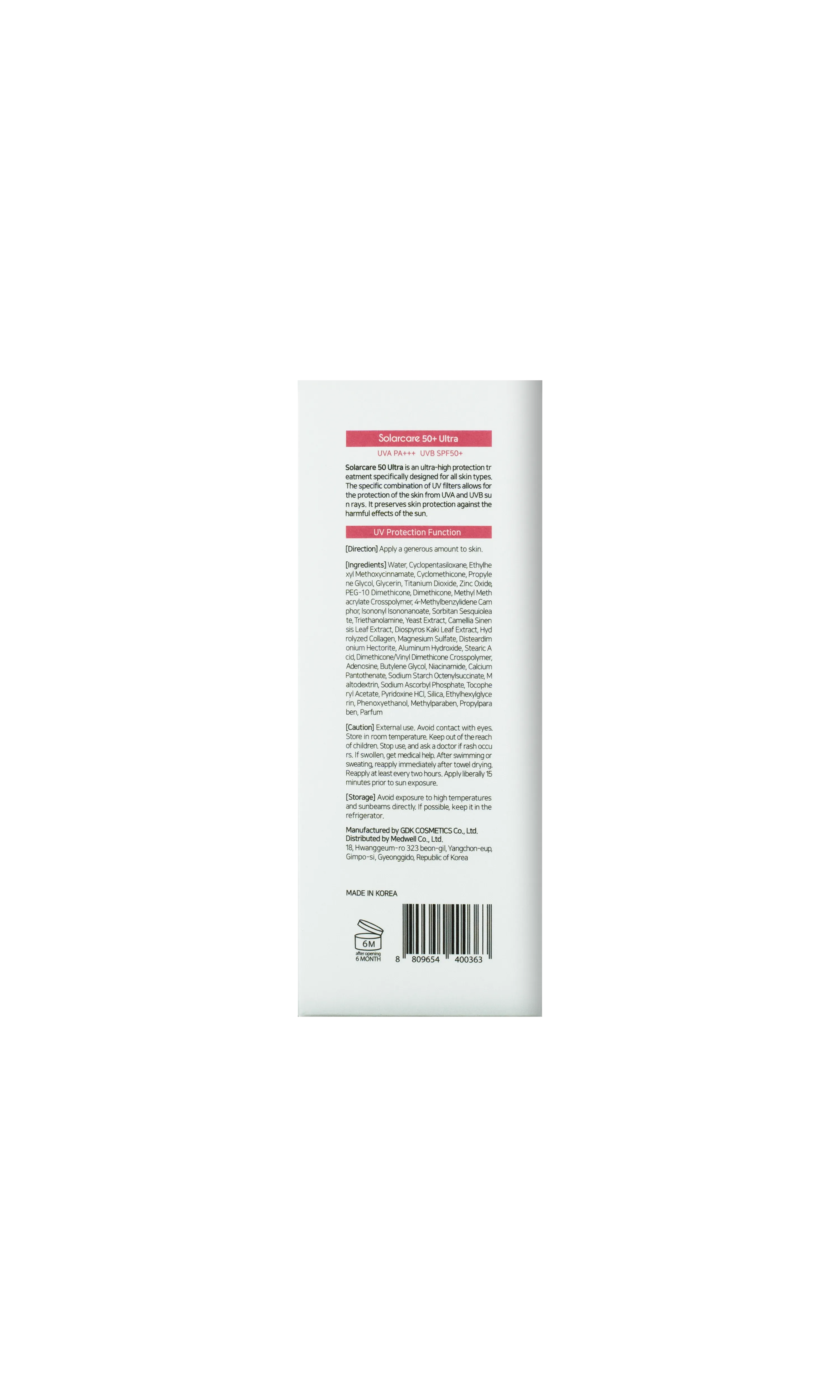 Adenosine, Hydrolyzed Collagen, Camellia Sinensis Leaf Extract, Yeast Extract SPF50+, PA+++